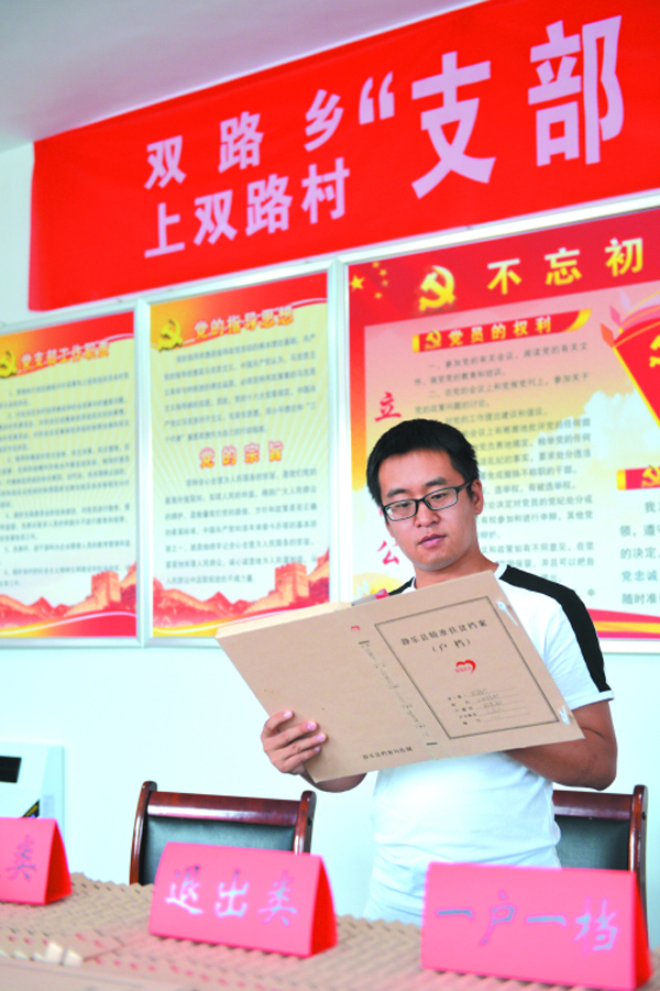 李岩在整理精准扶貧檔案。 本報記者 宮愛文 攝