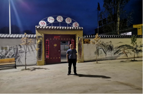 土炕正中的牆上挂著一面紅紅的黨旗,很是惹眼。牆上懸挂著村委組織機構和規章制度,以及駐村幫扶工作隊主要職責、第一書記工作職責、幫扶責任人職責等牌子。地上生了一個火爐,明晃晃的爐筒插到牆上的煙道裡,北方的冬天太冷了,這單薄的平房比不上窯洞。地上一個袋子裡裝著碳,旁邊放著簸箕。現在是夏天不用每天生火爐了,但是做飯還是得劈柴燒火的。幾年下來,范曉龍燒火做飯都是干淨利落,有模有樣。房間裡的倆張桌子倆台打印機,一台電腦記錄著他工作的點點滴滴。隔壁是村委會的大辦公室,有40多個平方,進門一張長方形的暗紅色會議桌,二十多把椅子,幾個文件櫃一字排開,裡面放著滿滿的工作材料、檔案等。正面懸挂著55英寸的大電視,牆上挂著“不忘初心,牢記使命”的黨務工作牌匾。麻雀雖小,五臟俱全,在這個小小的村委會裡,扑面而來的就是工作的氣息。這個村委大院也是他們來了倆年之后籌集資金修建的,這裡一磚一瓦、一草一木都凝聚著他的心血。小院的南面留了一小塊空地種了幾棵景觀樹和一些格桑花、蝴蝶花、牡丹花,把小院點綴的生機勃勃。