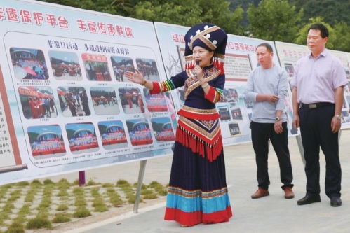 南寧市鄉村和美專項活動現場推進會在民族村上局州屯舉行,農建萍(左一)為各市、縣與會人員介紹民族村開展鄉村建設情況。 資料圖