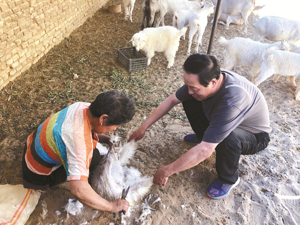 李元海和貧困戶一起剪羊毛