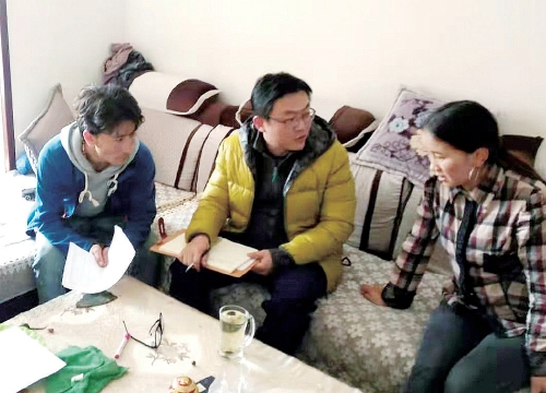 王斌(中)在貧困群眾南吉措家走訪。 資料圖