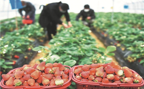 日前,安徽省滁州市南譙區金鵬生態農業專業合作社員工正在大棚內採摘草莓。近年來,該合作社拓寬種植渠道,鼓勵農民發展反季節大棚草莓種植,每畝草莓每季可為農戶增加純收入2萬元以上。 資料圖