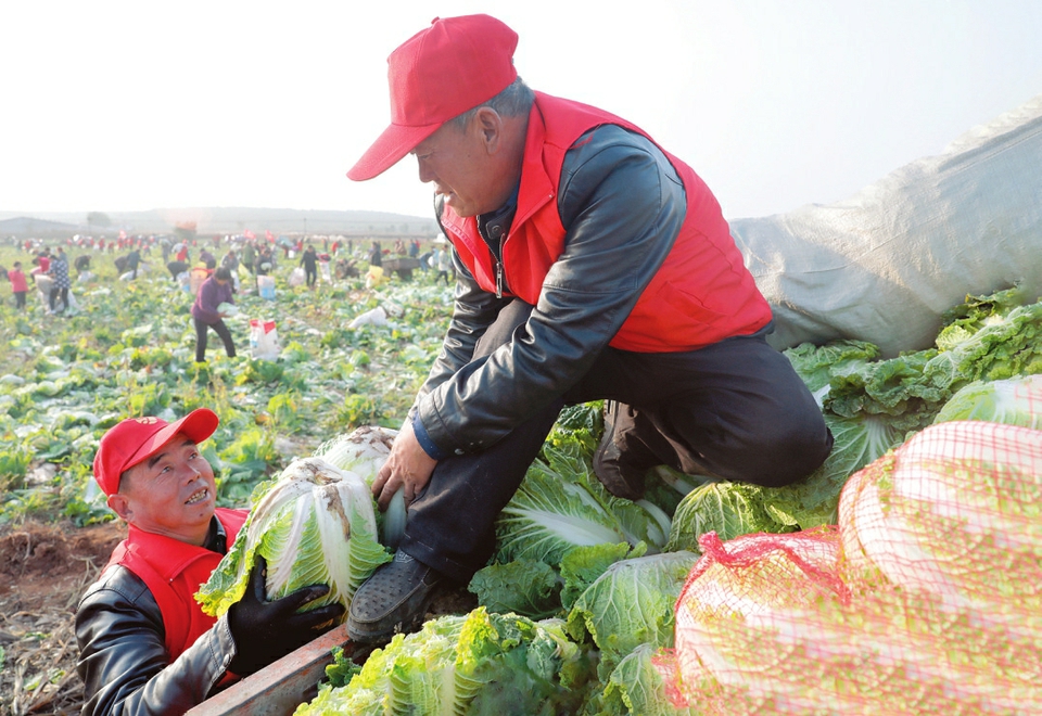 長治市新時代文明實踐志願者幫助農民收獲蔬菜。