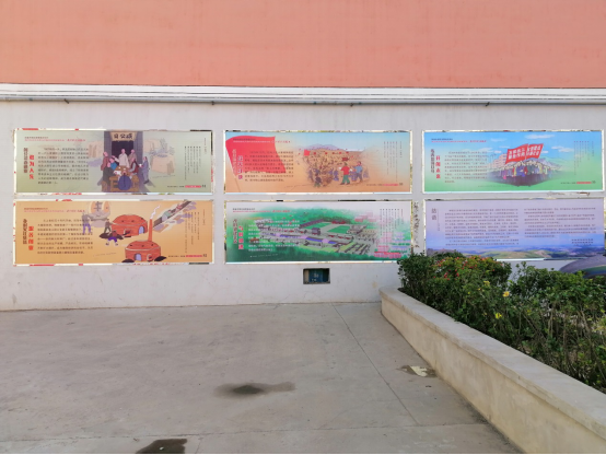 同時,這裡的文化牆宣傳內容很豐富,每章畫面篩選本村相關人物事跡,以簡潔生動且略帶漫畫風格的畫法構建畫面﹔每章文字說明150字左右,畫龍點睛揭示畫面內涵。