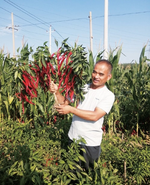 樂陵市楊安鎮王屯村種植大戶張國軍展示他種植的辣椒。