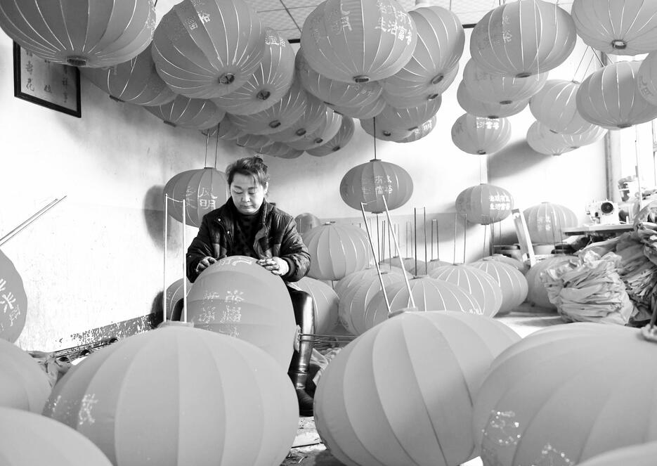 春節臨近,稷山縣稷峰鎮楊趙村燈籠加工車間一派繁忙,工人們按照傳統制作工藝趕制燈籠訂單,紅紅火火喜迎新春。據了解,該村從事燈籠加工的村民達1000余人,年生產燈籠1000余萬隻,通過線上線下銷往全國各地,燈籠加工已成為當地村民致富的一項主導產業。圖為2月7日,稷山縣稷峰鎮楊趙村村民在加工紅燈籠。