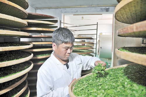 山西冠霖農業科技股份有限公司的員工在查看連翹茶。