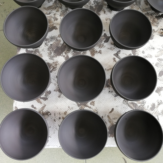開窯儀式上,公司負責人侯向軍激動地說:“我們以傳統的技法和傳統的礦物原料,經過長時間大量的試驗,終於恢復了失傳已久的華北油滴工藝。”公司主要恢復燒制的成品為華北油滴盞。通過將煤矸石變廢為寶作為原料,經過粉碎、打泥、練泥、成泥等環節,最終成為油滴盞的泥料。同時,以黃土為釉,分別經過850°和1380°的兩次燒制,最終成型。