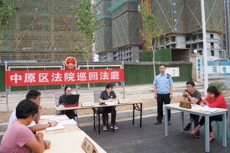 鄭州市中原區人民法院法庭在須水街道辦事處附近的某工地公開開庭審理案件現場。 郭偉芳 攝