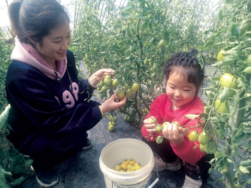3月25日,游客在河南省葉縣田庄鄉福旺蔬菜種植合作社興致勃勃地採摘七彩番茄。近年來,該合作社注重綠色種植和生態旅游相結合,所種植的無公害綠色蔬菜以口感純正深受游客的喜愛,產品不出大棚就被採摘一空。