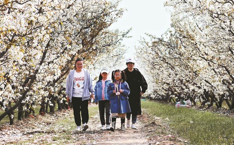 近日,文水縣萬畝梨花競相開放,吸引了文水及周邊縣的游客來這裡賞花、拍照。文水縣地處肥沃的晉中盆地,緊臨汾河、文峪河,自然條件優越,水利設施完善,土壤水肥非常適宜水果生產。特別是該縣南安鎮是優質梨的主要產區,他們生產的酥梨注冊商標 “女皇貢梨”,曾多次在農產品展覽會上獲獎,目前已經成為當地老百姓增收主導產業。
