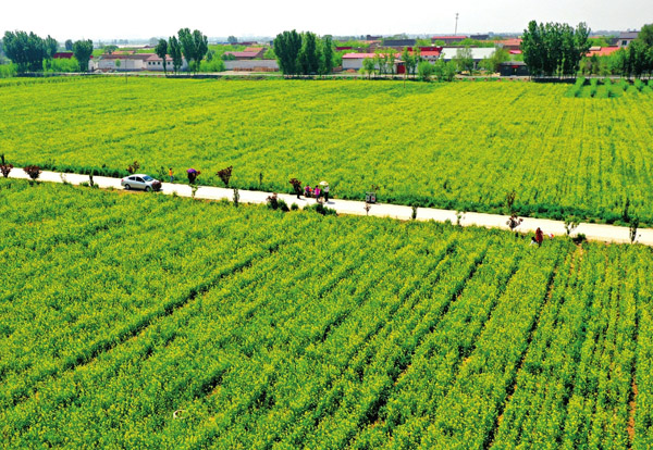 五月二十日,清徐縣徐溝鎮西懷遠村,游人正在盛開的油菜花前嬉戲游玩。近日,西懷遠村的五百畝油菜花開始進入盛花期,村頭田地宛如黃色海洋一般。近年來,西懷遠村調整農業產業結構,將一部分農田改種油菜花,實現旅游和農業經濟雙向提高。油菜花從最初的三百畝發展到如今五百畝種植面積,每年五月花開時節,吸引眾多參觀游覽者前來打卡,推動了當地鄉村旅游的發展。