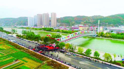 本報訊 金秋十月,碩果累累。10月11日,由山西新民能源投資集團有限公司捐建的甘泉橋通行儀式在湫水河畔舉行。臨縣縣委書記張建國宣布甘泉橋正式通行並與新民集團董事長李建共同為甘泉橋揭牌。