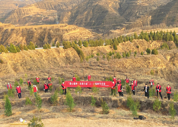 3月12日植樹節,大寧農商銀行設立“植樹基地”,自發組成30余人的志願隊,開展“愛心播種·農商行動”主題植樹活動,當日栽種幼苗200余株,用商行人的實際行動洒下一片綠色,播種下愛與希望。 (張鵬飛 攝)