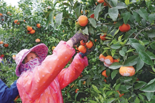 在南寧市桂福春農民專業合作社沃柑種植基地,工人在搶收沃柑。 資料圖