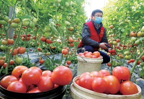 近日,在山東省東營市東營區六戶鎮武王村,黨員志願者正在瑞祥蔬菜種植專業合作社的大棚內幫助農民採收西紅柿。受疫情影響,合作社用工短缺,銷售渠道變窄,當地通過組織黨員志願者幫助採收、開辟“綠色通道”、搭建“農超對接”渠道等措施,助農解決採收和銷售難題,全力保障市場供應。
