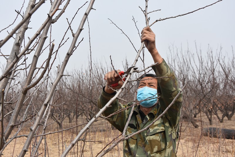 3月25日,大同市雲岡區肥果園農業專業合作社負責人董其成正在自家果園中為果樹修剪枝條。在談到今年春耕備耕情況時,他說道:“去年杏樹、西梅樹收成和價錢都挺好,趁著天氣轉暖,得趕緊修剪枝條,農時不等人,還得拉點兒有機肥。”