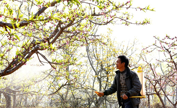近年來,垣曲縣左家灣村圍繞實施鄉村振興戰略,建起500余畝鮮桃採摘園。眼下,果農們正忙於春管,利用鄉村游助推農民增收致富。4月6日,該村果農馮小生給桃樹噴打農藥,防治虫害。