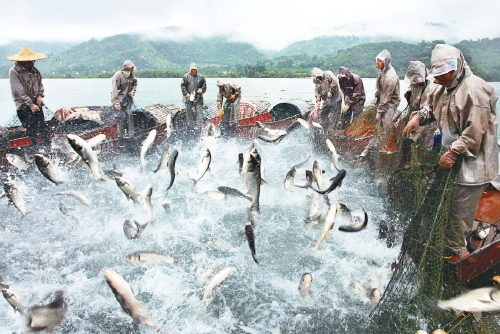 圖為涼山農民利用煙草行業援建的水庫發展魚類養殖。