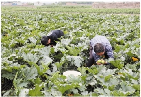 6月16日,原平市新原鄉解放街村的蔬菜基地裡,菜農正在採摘西葫蘆。近年來,該市調整農業產業結構,積極引導組織農民大力發展特色種植業,加快了農民致富奔小康步伐。