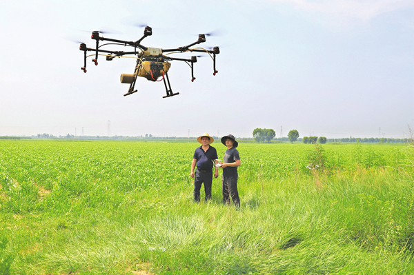 7月14日,定襄縣良種場正在使用無人機噴洒農藥,治理300畝張雜谷田裡的粘虫。定襄縣良種場與山西農大合作,加大優良種子培植,積極推廣張雜谷的種植,並提供技術指導,今年在定襄、原平、五台等縣市種植張雜谷5萬余畝,有效擴大了小雜糧的種植面積。