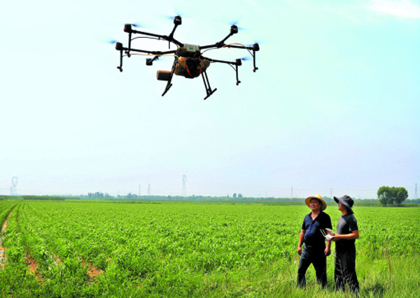 7月14日,定襄縣良種場使用無人機噴洒農藥,治理300畝張雜谷田裡的粘虫。該良種場與山西農大合作,加大優良種子培育,積極推廣張雜谷種植,並提供技術指導,今年在忻府區、原平、定襄、五台等地種植張雜谷5萬余畝。