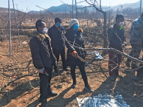 報恩寺村村民鞏鳳龍下決心對自家果樹進行改造,他從正月初六一直盼到現在。受疫情影響,專家來不了果園,他便戴著口罩自己修剪。但由於每株果樹生長狀況不同,修剪方法又存在差異,專家不到現場操作,問題解決難度很大。他有些著急,不時地通過電話詢問專家來現場指導修剪的時間。