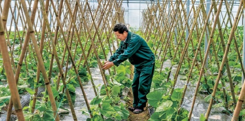 近日,浙江省台州市仙居縣神仙居現代農業園區就業農民在設施大棚內管護蒲瓜。今年,園區通過擴大設施大棚蔬菜種植面積、增加管護力量等措施,提高蔬菜產量和品質,以滿足市場需求。