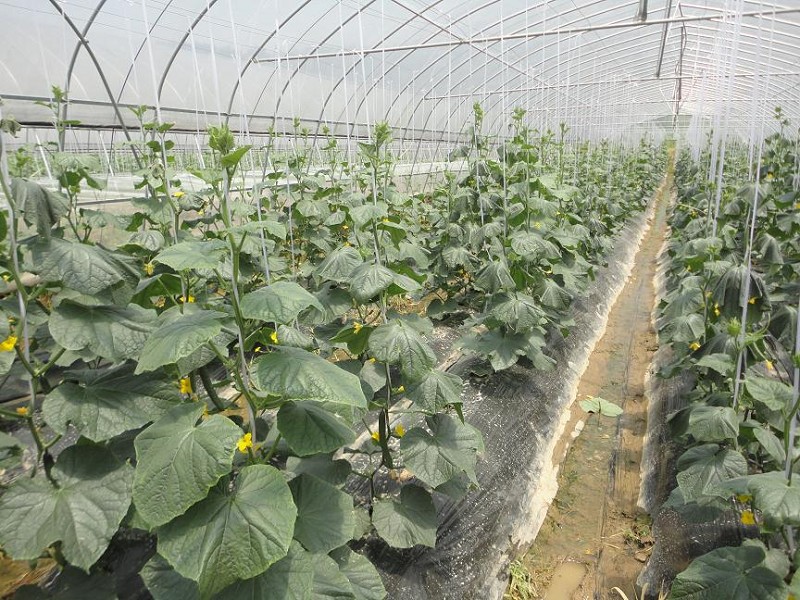 越冬黃瓜:蓋白地膜,促進陽光直射土壤,提高地溫,保護根系。
