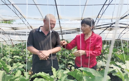 陳春秀(右)在荊坨村指導蔬菜種植戶。 賈朔榮 攝