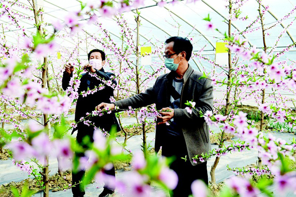 隨著氣溫回暖,稷山縣在保障春耕物資供應的同時,引導農民一手抓防疫,一手抓農業生產,確保水果、蔬菜等農作物的管理不誤農時,為農作物豐產、農民增收奠定基礎。圖為2月13日,該縣清河鎮秦家庄村村民在日光溫室內給油桃疏花。