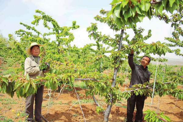 4月16日,陽城縣西河鄉林源開心農場的職工正在察看櫻桃樹、海棠樹的挂果情況。陽春三月,該農場在充分做好疫情防控的同時,抓緊時間對各類果樹進行果園管理,為豐產豐收奠定基礎。