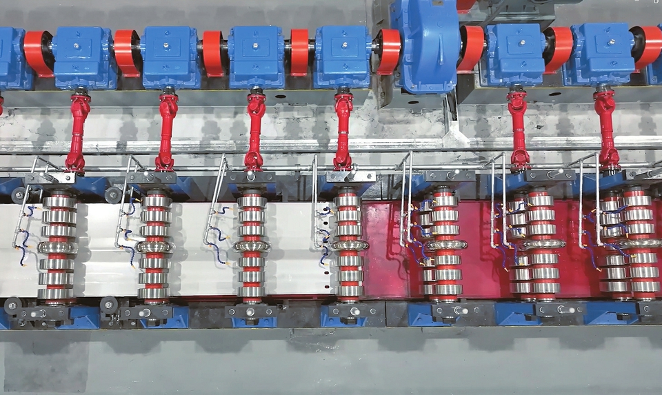 【装备】山西交科集团低碳耐久型护栏板自动化生产线上,一块块崭新的公路不锈钢护栏板陆续成型,即将销往高速公路建设项目。