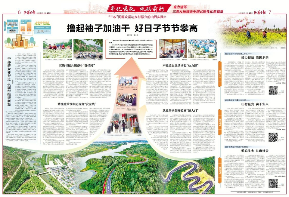 驻村帮扶是连接干群的纽带。6592支驻村工作队、2万余名驻村干部扎根一线,“五个清”工作法打通政策落地“最后一公里”。28家中央单位定点帮扶,驻晋部队、国有企业合力参与,汇聚成振兴发展的磅礴力量。