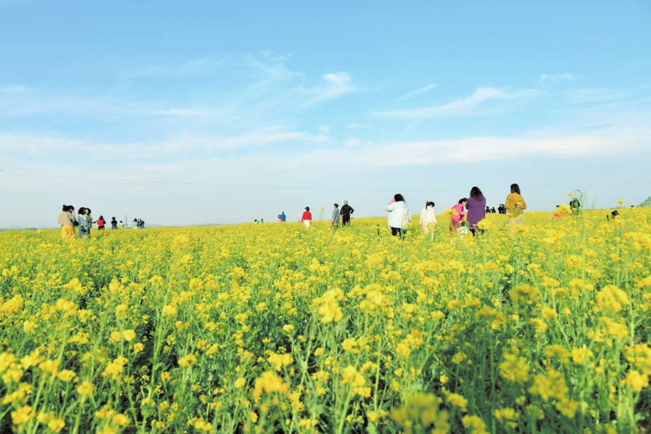 阳泉市城区义井镇南庄村油菜花田游人如织。刘胜摄