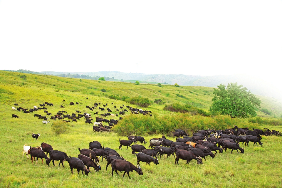 晋城市沁水县示范牧场内黑山羊羊群悠然自得。