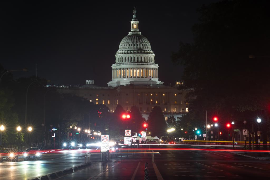 这是7月2日晚在美国首都华盛顿拍摄的美国国会大厦。新华社记者胡友松摄