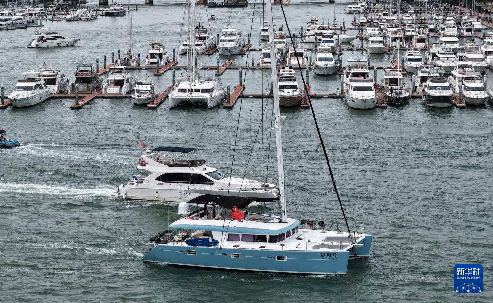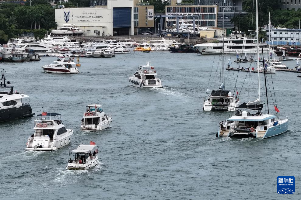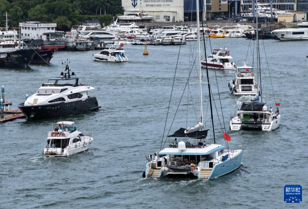 8月23日,游艇驶回海南省三亚市游艇码头避风(无人机照片)。