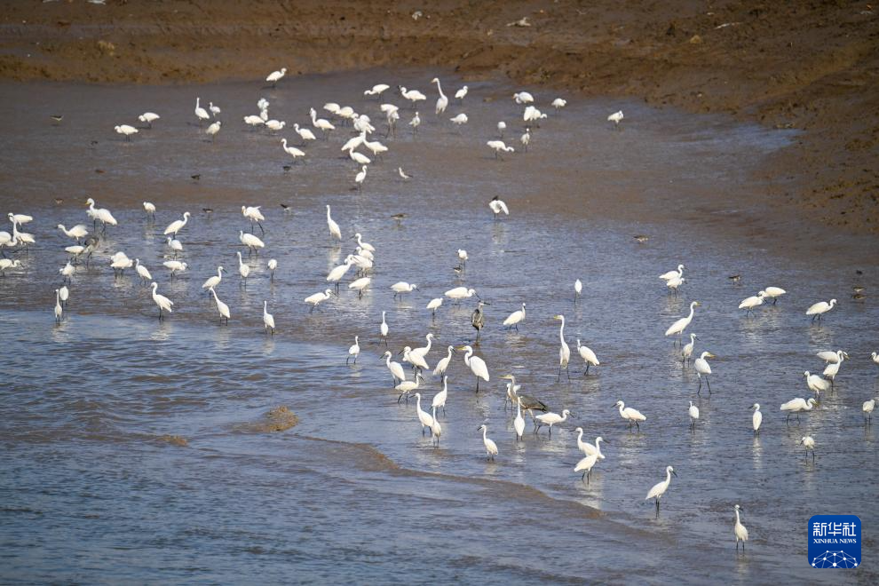 群鸟在东台条子泥湿地“720”高潮位栖息地栖息(2023年8月31日摄)。