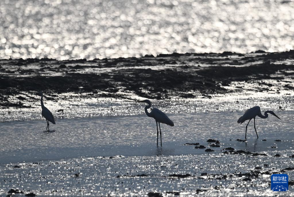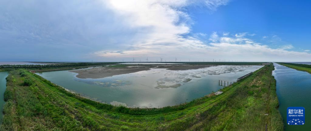 8月25日拍摄的东台条子泥湿地“720”高潮位栖息地(无人机照片)。