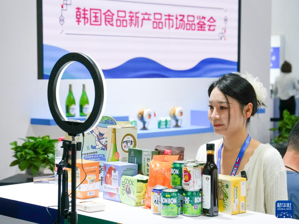 8月27日,参展商在第十五届中国-东北亚博览会现场进行线上直播。