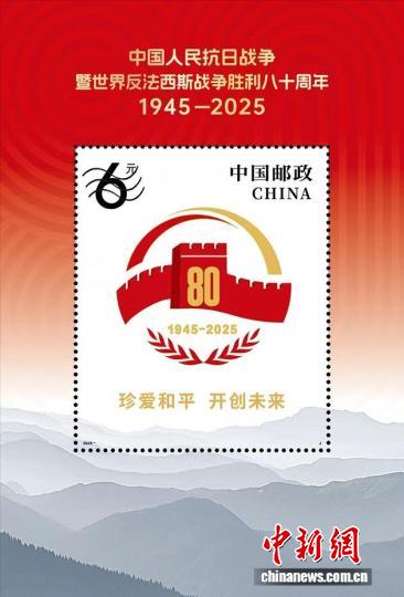 《中国人民抗日战争暨世界反法西斯战争胜利八十周年》纪念邮票小型张1枚。(中国邮政供图)