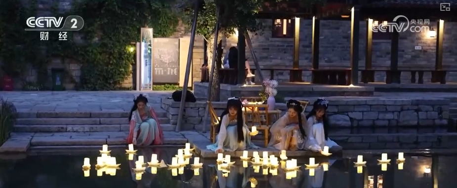 在山东济南的明水古城,景区依托百脉泉泉群带来的丰饶水系,结合当地非遗文化传承,为游客营造出“沉醉不知归路”的梦幻宋风氛围。