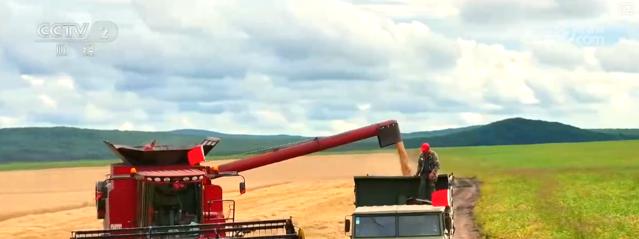 走进嫩江市塔溪乡的小麦种植区,数台联合收割机在田间穿梭,将成熟的麦穗卷入机身。饱满的麦粒从卸粮口倾泻而下,装载到运粮车里。