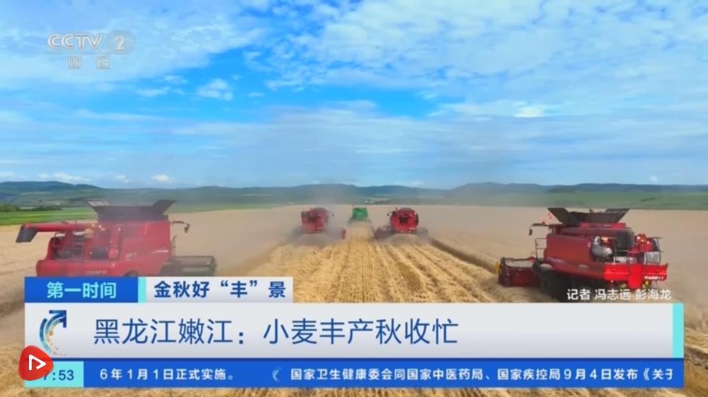 眼下,在黑龙江嫩江市小麦陆续进入成熟期,农户抢抓晴好天气开镰收割,确保小麦颗粒归仓。