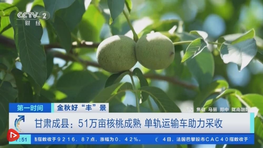甘肃成县:51万亩核桃成熟 单轨运输车助力采收