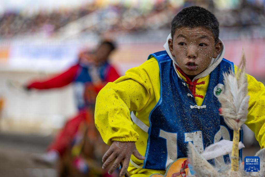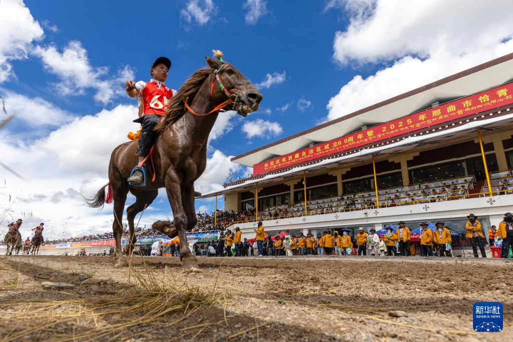 9月5日,小骑手在2025年那曲市恰青赛马节10000米竞速赛中驰骋。