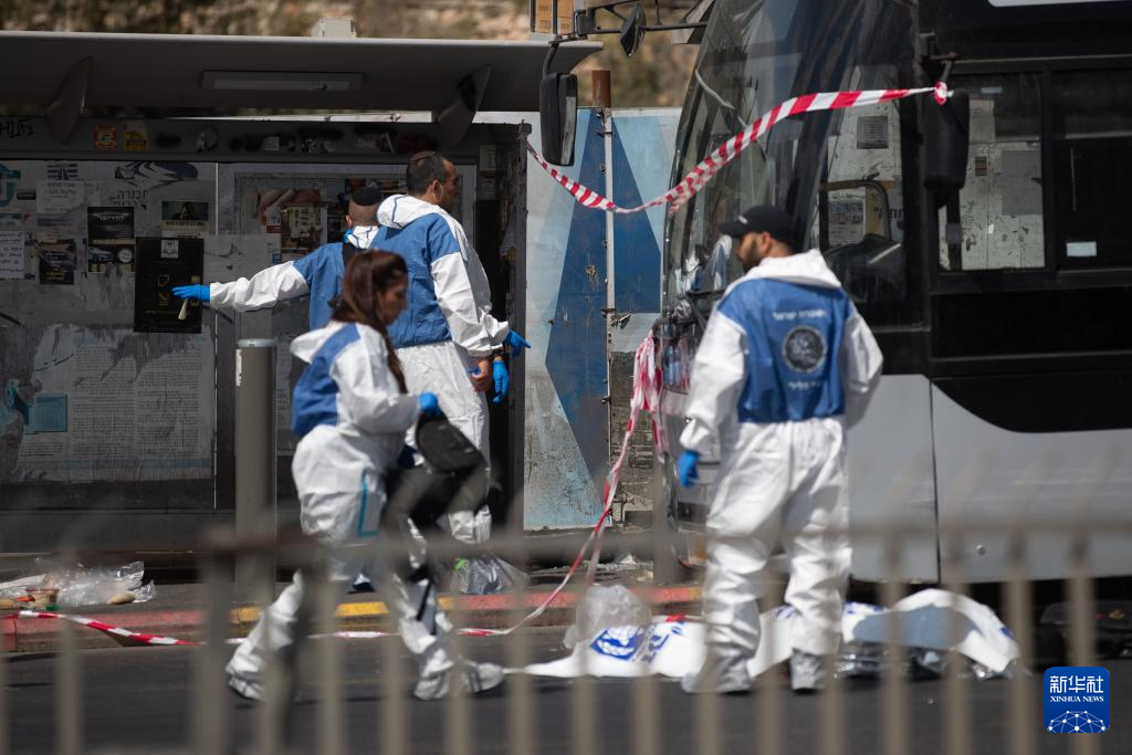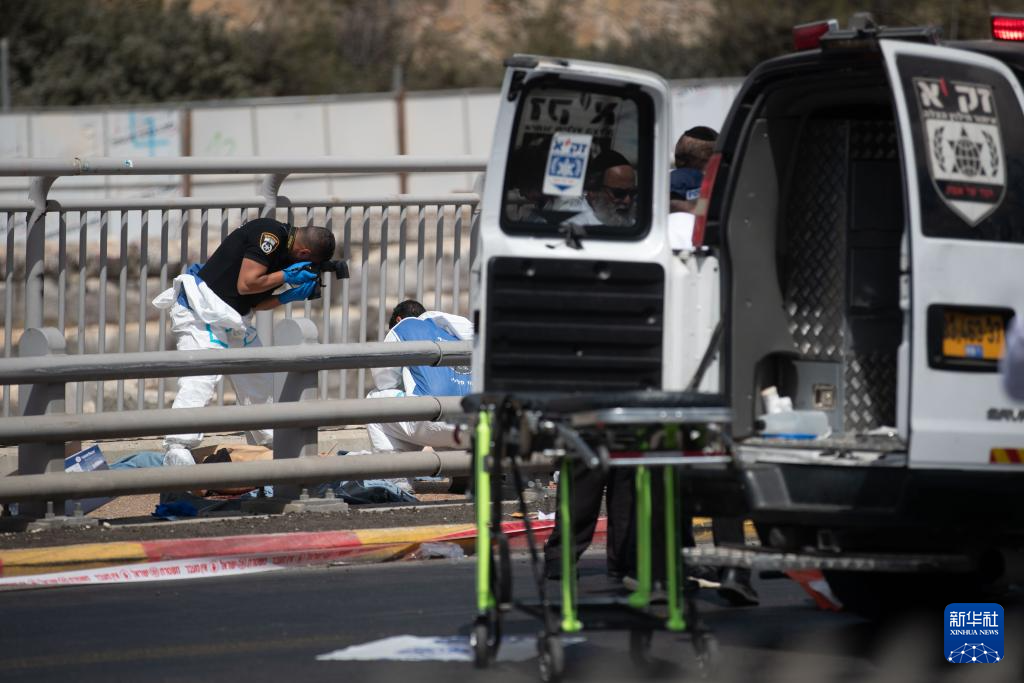9月8日,警察在耶路撒冷枪击事件现场工作。新华社记者 陈君清 摄