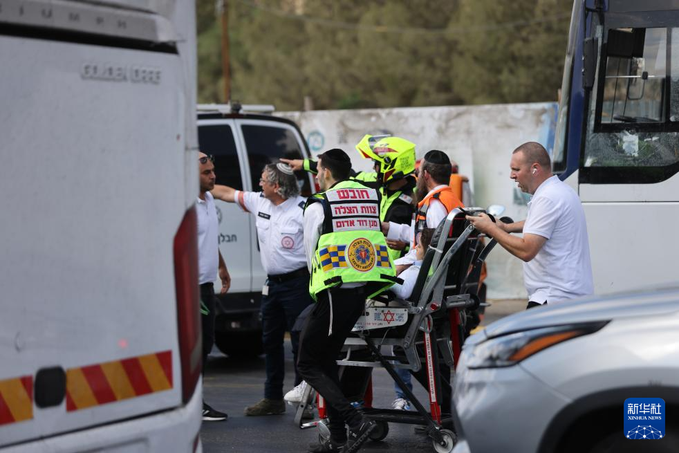 9月8日,人们在耶路撒冷枪击事件现场转移伤者。新华社发(贾马尔·阿瓦德摄)