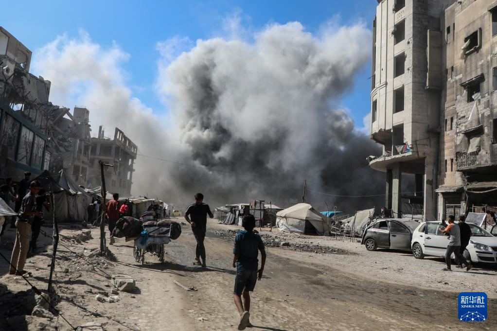 9月8日,加沙城一座高层建筑遭以色列军队空袭后升起浓烟。新华社发(里泽克·阿卜杜勒贾瓦德摄)